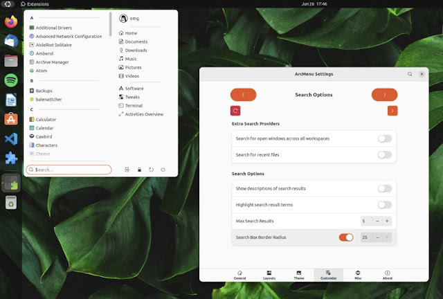 يتضمن أحدث إصدار من Arc Menu تصميمًا محدثًا لمربع إدخال البحث المستخدم بواسطة العديد من التخطيطات الأكثر شيوعًا للإضافة، إلى جانب إعداد جديد لتعديل نصف قطر حدود حقل الإدخال حيث يظهر إصلاح خطأ: أصبح من الممكن الآن لصق المحتوى في حقل البحث باستخدام ctrl + v.