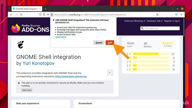إذن لتثبيت إضافات جنوم، ستحتاج إلى:- متصفح موزيلا فايرفوكس Mozilla Firefox أو متصفح الويب Chrome / ium.